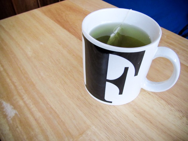 Drinking my favorite brand of green tea (Organic & Pure) out of my favorite mug, found at Goodwill. The best part is, I have no “F” in my name, nor does any significant part of my life have to do with the letter “F.” I think that’s why I love it so much. It’s just the F-mug.