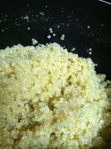 Add the desired amount of quinoa to your skillet and mix well. I did not use the entire cooked amount, but about 3/4 of it and set the rest aside for leftovers (yum!). Add up to 1/2 cup olive oil. The quinoa absorbs a ton of moisture, so it can get dry pretty quickly. Adding extra olive oil won’t hurt anything, and it totally takes away the dryness. Sautee until quinoa has absorbed the flavor of the seasoning (never hurts to taste-test as you go!)
