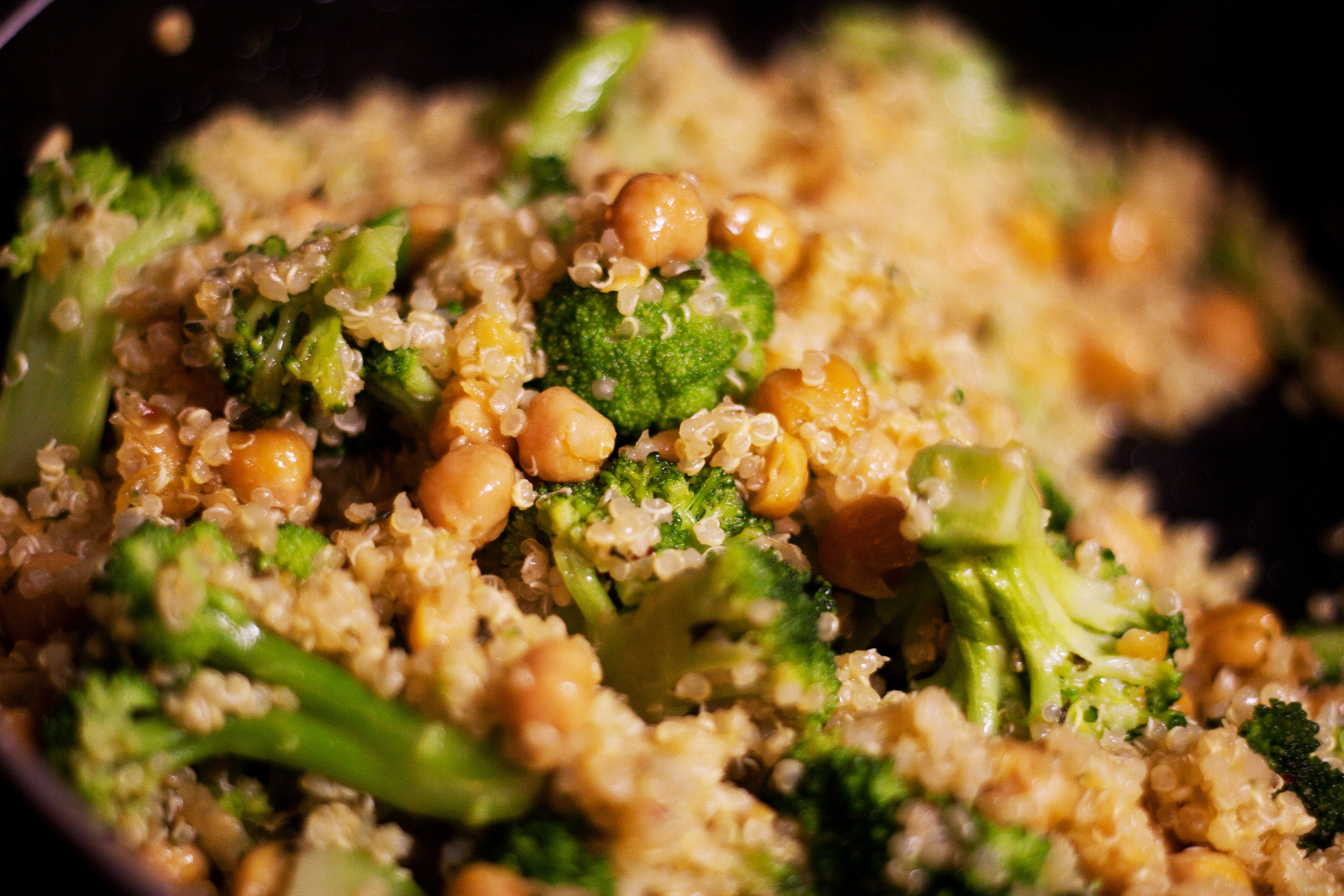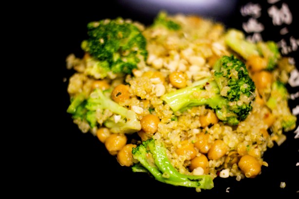 This dish was a recipe of my own creation, and it combines food from three different cultures! I try to do this every once in a while, by throwing Italian ingredients in a quesadilla or taco, or by using Asian seasonings in a Middle Eastern dish, but I think this one might be my favorite of all time. I used the South American/Peruvian Quinoa as the base, Chickpeas (originally Turkish/Middle Eastern), and traditional Italian Aglio Olio seasoning (olive oil, garlic, parsley, red pepper).