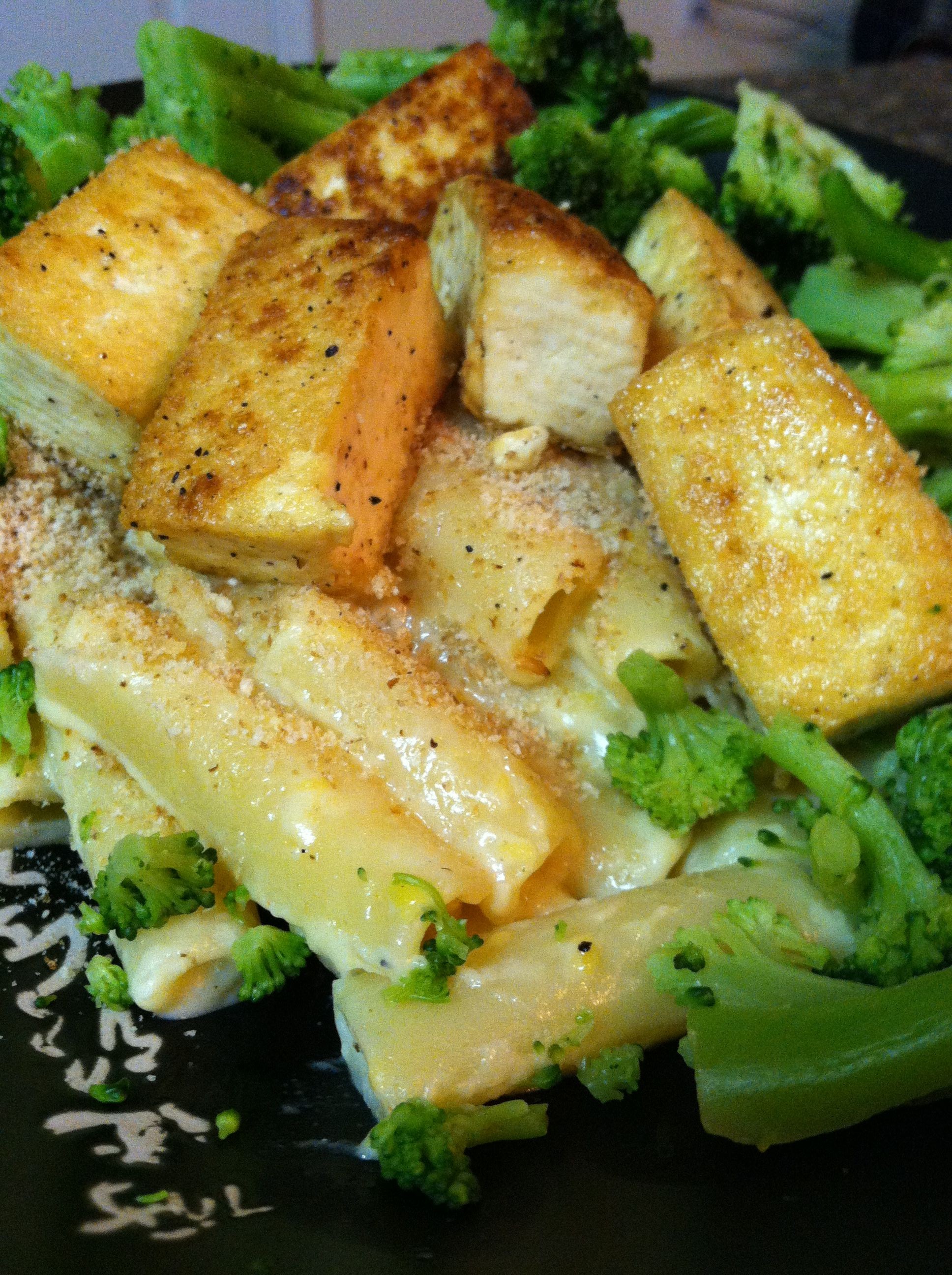 I always see recipes for foods and sauces made with beer, and I thought ‘Hey, I love beer! I want to try that!” So I did. The dish I created mixed ziti with a beer cheese sauce, pan-fried tofu, and broccoli. Recipe below! (Also, this will likely be the last ever non gluten-free recipe I post…but more later.)