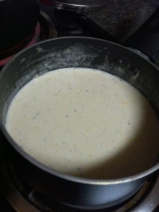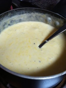 Once the sauce is hot, add cheese a small amount at a time and stir until melted.
