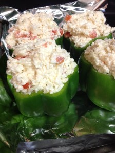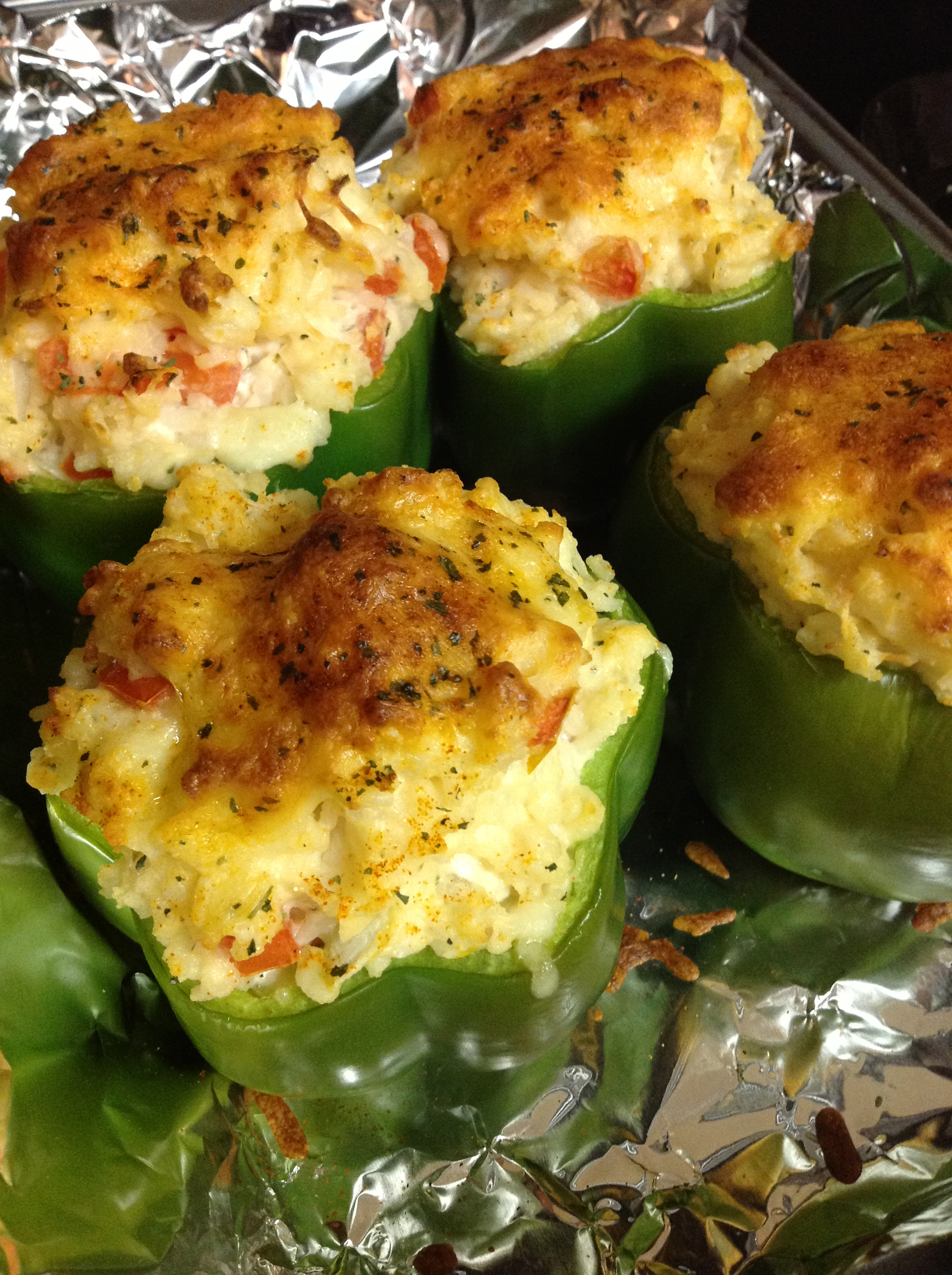 Before baking, top each with shredded jack cheese and a dash of paprika each. Bake at 375 for 30-40 minutes, or until pepper is tender and rice is warmed through. Enjoy!