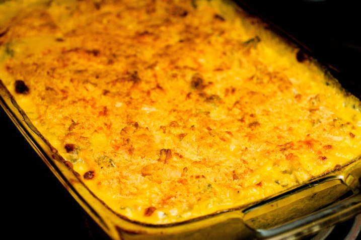 Pop in the oven at 375 for 30-40 minutes, or until bubbly and brown. If your cheese sauce is bubbling, but the top does not look brown, switch the oven to Broil on High for about 3-5 minutes until the top is brown and crispy.