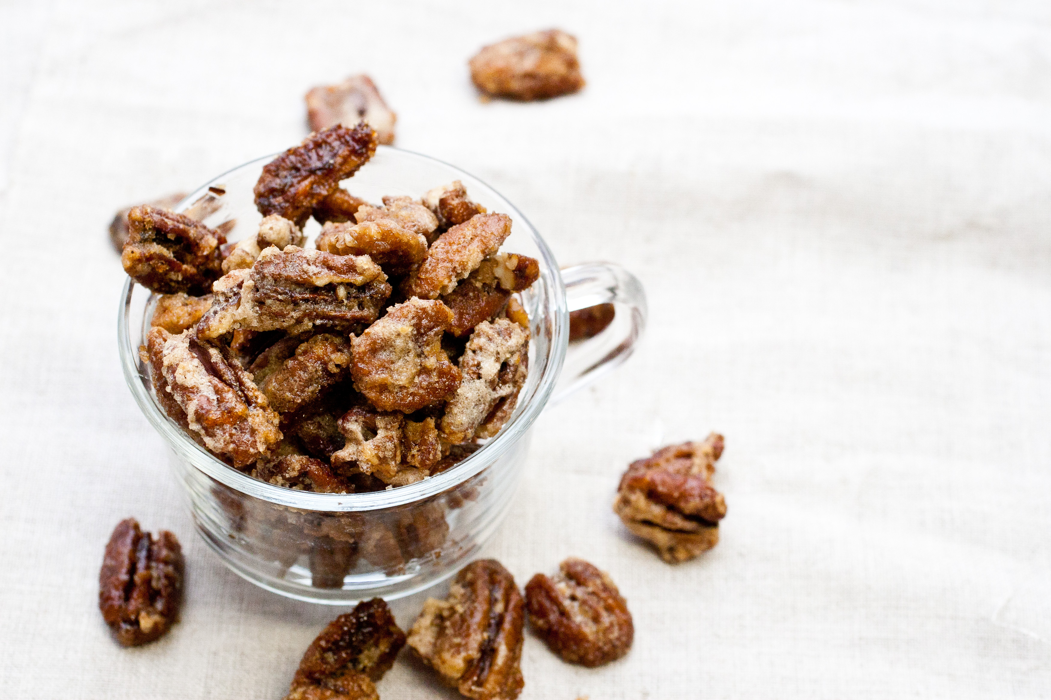 These pecans are amazing. One of the best parts of the holidays is having a bowl of these on hand at all times. I got this recipe from my mom, because I just had to learn to make them at home! This past Christmas, and the one before that, I made several batches of these pecans to give out as gifts, and they always turn out to be a favorite! Just this week someone gave me back the empty tin so that I can “refill it next year.”