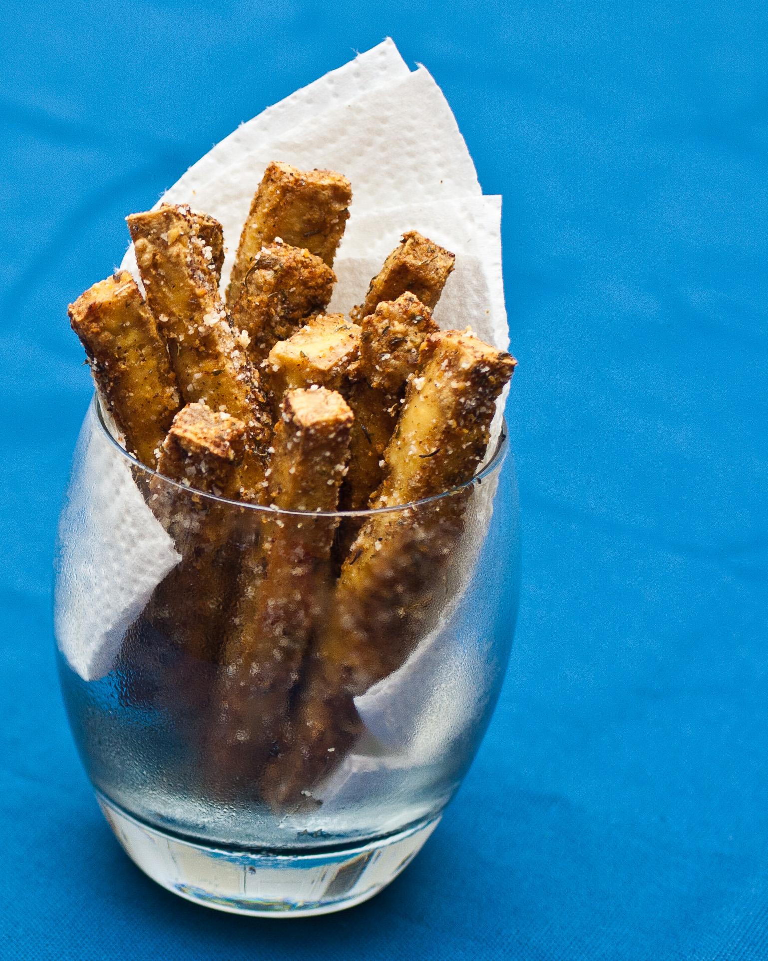 I know, I teased you all a few weeks ago by sharing a photo of this recipe on twitter, and then I took forever to post it. My sincerest apologies!! It’s always amazing how real life just blows up all of a sudden. Sadly, when that happens blogging has to take a back seat, since I need to work to pay the bills and buy all this delicious food that I’m cooking up. Anyway, enough with the excuses! My boyfriend Stephen always says, “Don’t make excuses, make improvements.” I think I’ll add “and make more food” to the end of that. So enough of my jabbering, let me go through the recipe for tasty, healthy, and a soon-to-be favorite for you: seasoned tofu fries!