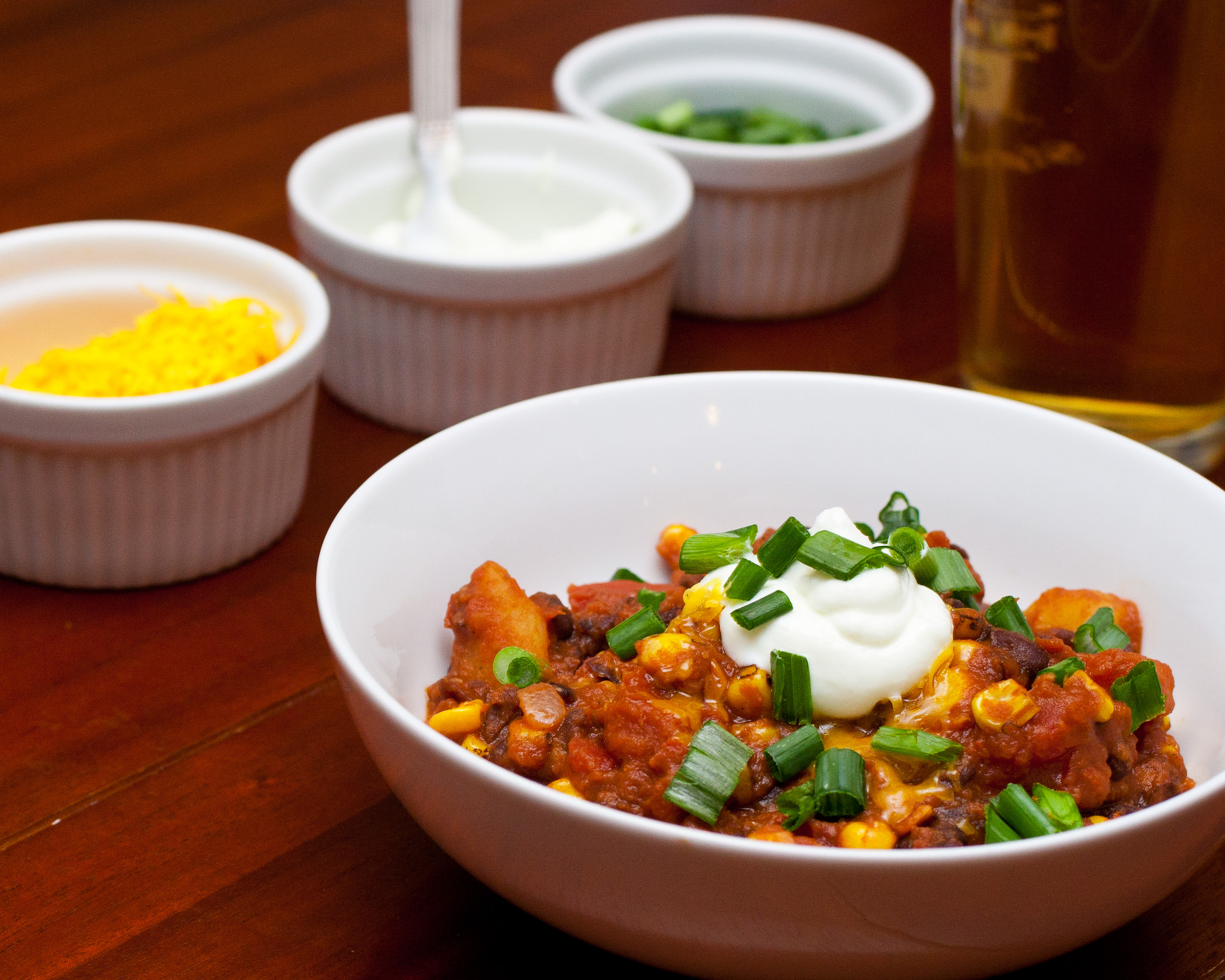 Serve with sour cream (I like Tofutti vegan sour cream), shredded cheese, green onions or chives, or crackers! Pair with your favorite beer!