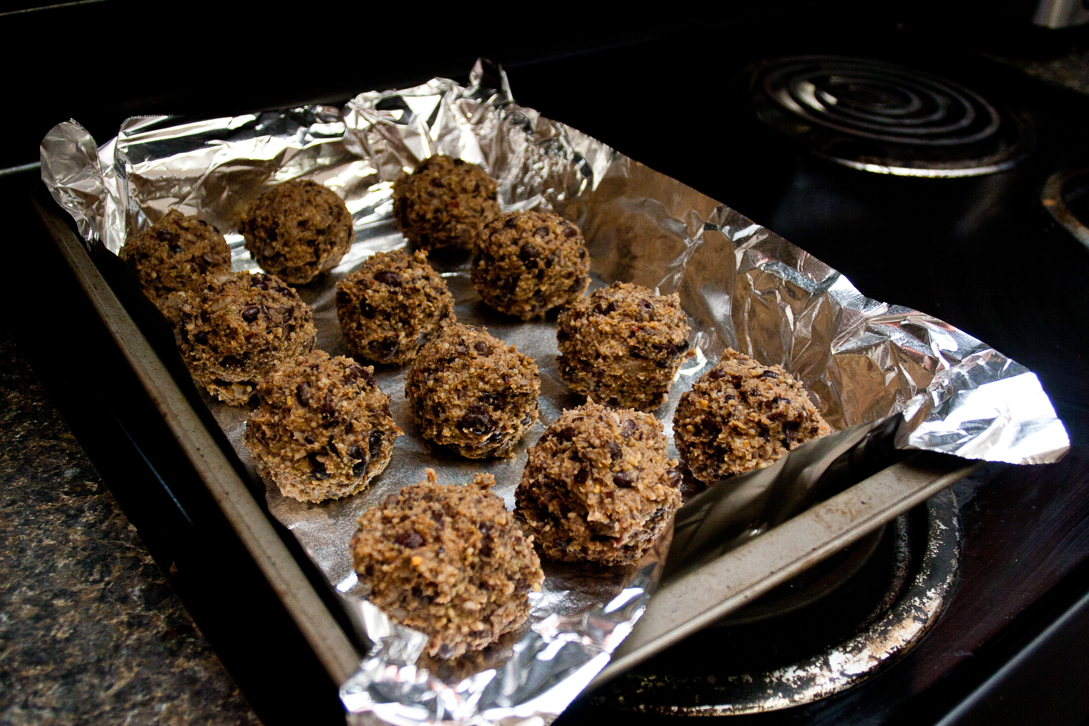 Bake for roughly 30 minutes, or until the black bean balls are firm and hot all the way through.